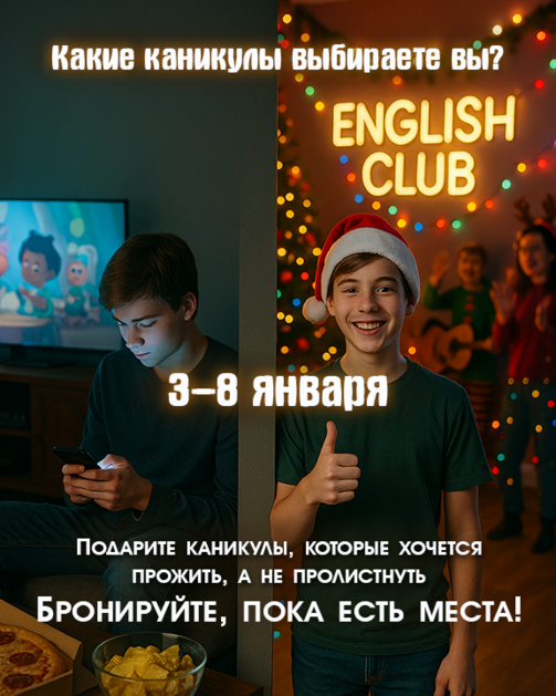 English Club — это каникулы, которые работают на развитие ребёнка и дают реальные результаты: меньше экранов, больше жизни, общения и уверенности.
